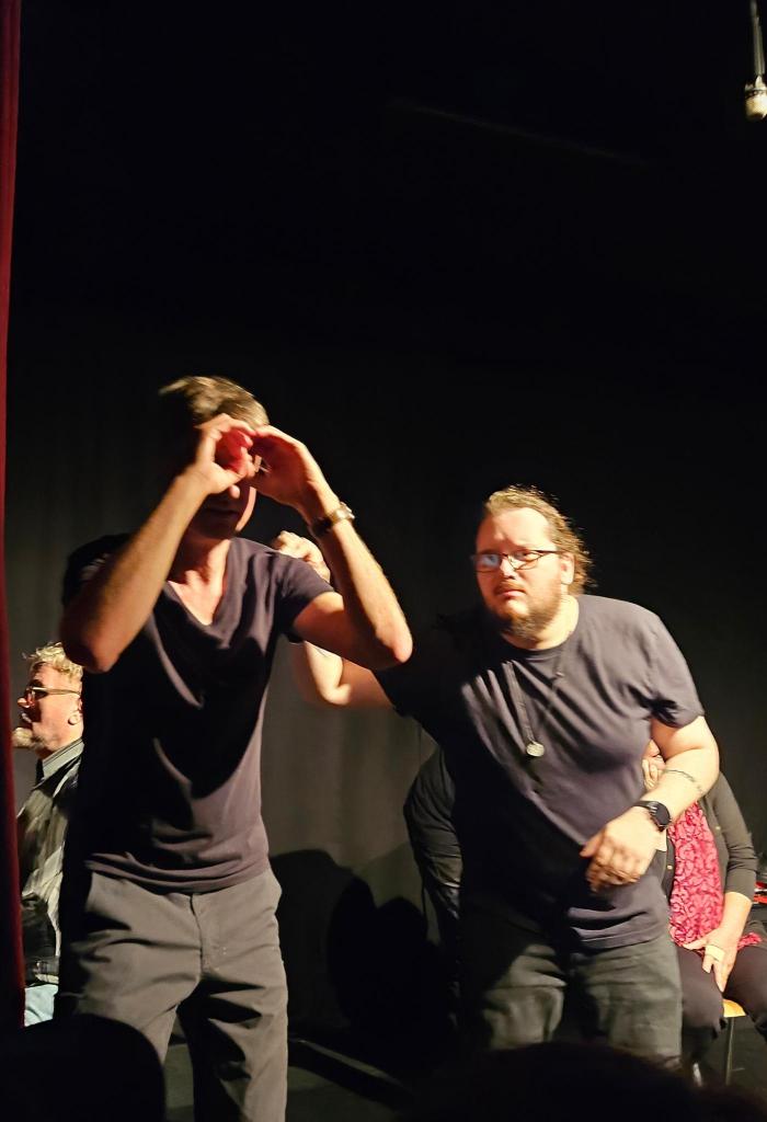 auf der Bühne stets präsent und energiegeladen, bringt er Witz und Bewegung in unser Spiel.